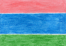 Desenho e pintura da bandeira da Gâmbia feita pela aluna Lívia Rafaelly do 8° ano C da Escola Municipal Cônego João Marques Pereira, desenvolvido através do Projeto Pintando a História. 15/08/2016.